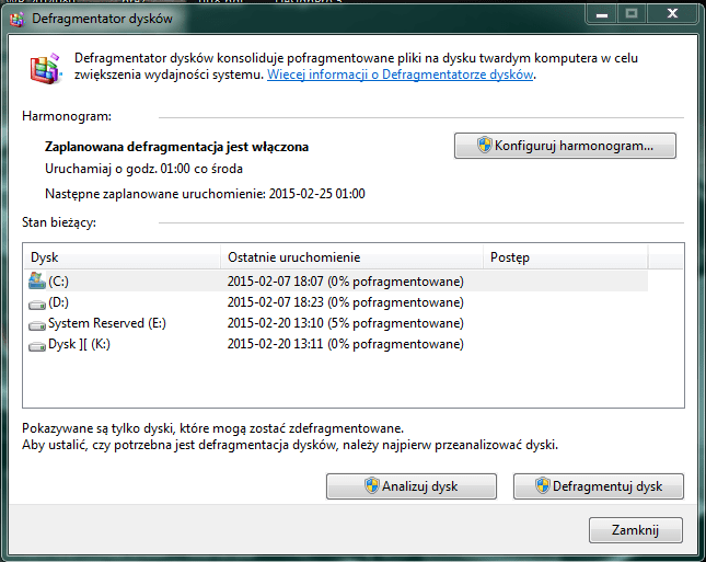 Jest to podstawowy program do defragmentacji dysków i partycji.