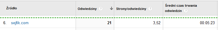 Proszę bardzo poniżej zdjęcie z statystyk Google Analytics: