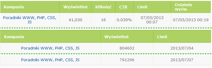 Poniżej opis reklam jakie wykupiłem: