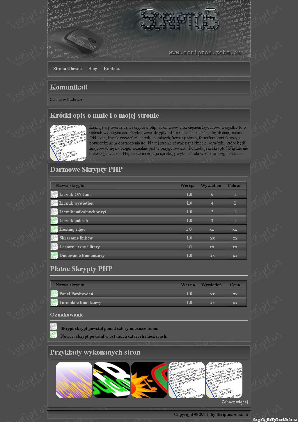 Była to pierwsza strona na której publikowałem swoje skrypty w języku PHP.