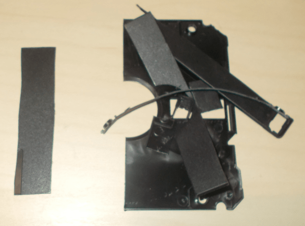 Czyli fragmenty stykania się wszystkich plastikowych fragmentów. Teraz przykładamy wycięty z dyskietki pasek i trzymamy aż nie zaschnie.