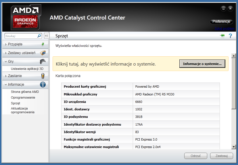 Przedstawiony sposób jest sprawdzony na własnej skórze. Po zainstalowaniu Windowsa 7, system nie widzi mi dedykowanej karty AMD Radeon R5 M330 tylko zintegrowaną kartę od Intela.