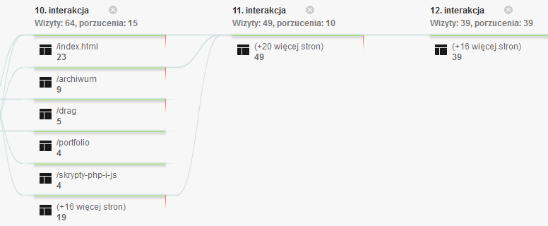 Przepływ zachowań, czyli ile stron przejrzeli użytkownicy wchodząc na stronę.