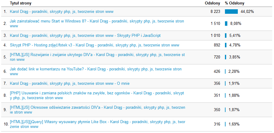 TOP 10 – stron na które najczęściej wchodzili użytkownicy