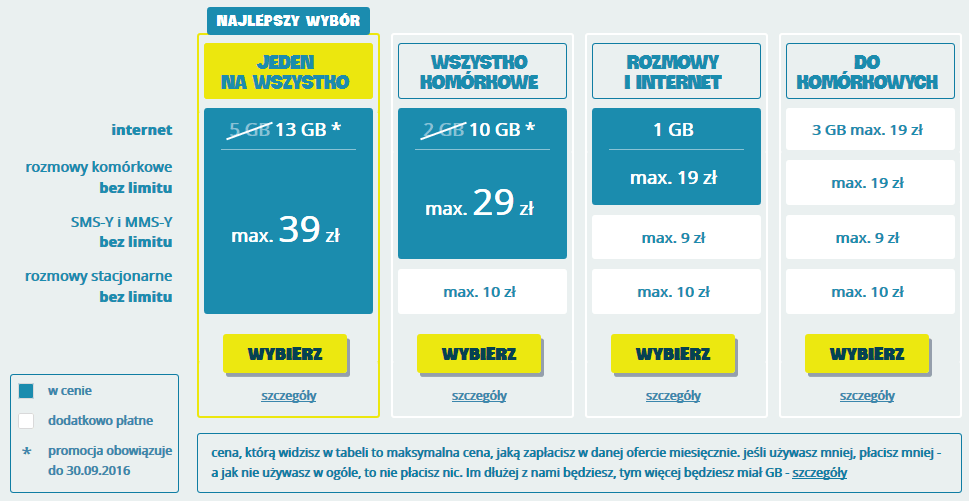Ponieważ jest to nowa usługa, która nie dawno została wprowadzona i jest opłacalna. Opłacalna ponieważ mamy nielimitowane minuty do wszystkich na komórki i 1 GB z limitem do maksymalnie 19 zł (łącznie), a w usłudze do komórkowych mamy same minuty za maksymalnie 19 zł, także z 1 GB internetu za tą samą kwotę bardziej się opłaca. A reszta bez zmian. Czyli minuty na stacjonarne za maksymalnie 10 zł, SMS-y i MMS-y za maksymalnie 9 zł.
