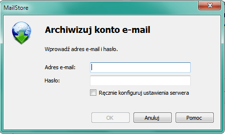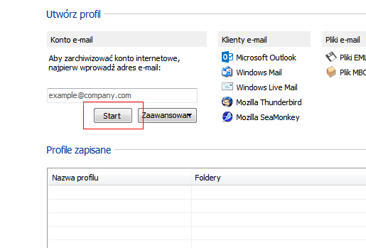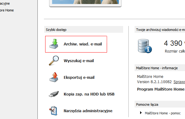 Po uruchomieniu programu wyskoczy nam okienko i wybieramy opcję Archiw. wiad. e-mail.