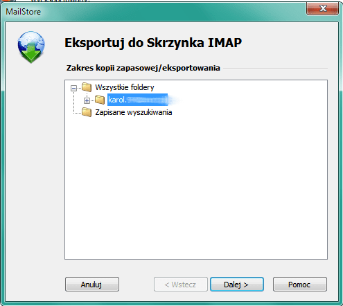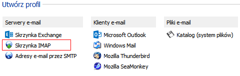 Również, nie jest to trudne, wygląda to na takiej samej zasadzie. Wybieramy Eksportuj e-mail, następnie wybieramy typ eksportowania, ja wybrałem IMAP, dla przykładu.