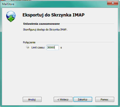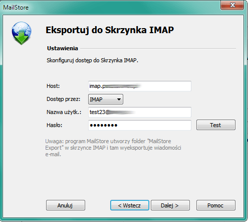 Gdy już wybierzemy klikamy Dalej i podajemy dane do połączenia z naszą pocztą na którą chcemy wrzucić te wiadomości.