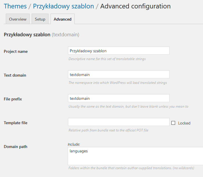 Wybieramy nasz szablon lub wtyczkę i wchodzimy w zakładkę Advanced by upewnić się, że wszystkie pola są dobrze wypełnione.