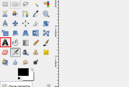 Gdy już mamy wczytany obrazek, to dodajemy tekst. W lewym oknie mamy różnego rodzaju narzędzia. Wybieramy ikonkę na której jest literka A (skrót kl. T)