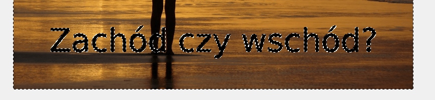 Zostaje nam tylko usunąć zaznaczenie. Robimy to za pomocą Zaznaczenie -> Brak (skrót kl. SHIFT + CTRL + A). Teraz wracamy do edycji głównego tekstu. Na liście warstw klikamy lewym klawiszem myszy na warstwę tekstu. Jeśli okazało się, że nie tą warstwę co trzeba pomalowałeś/aś, to przytrzymaj ją i zamień kolejności.